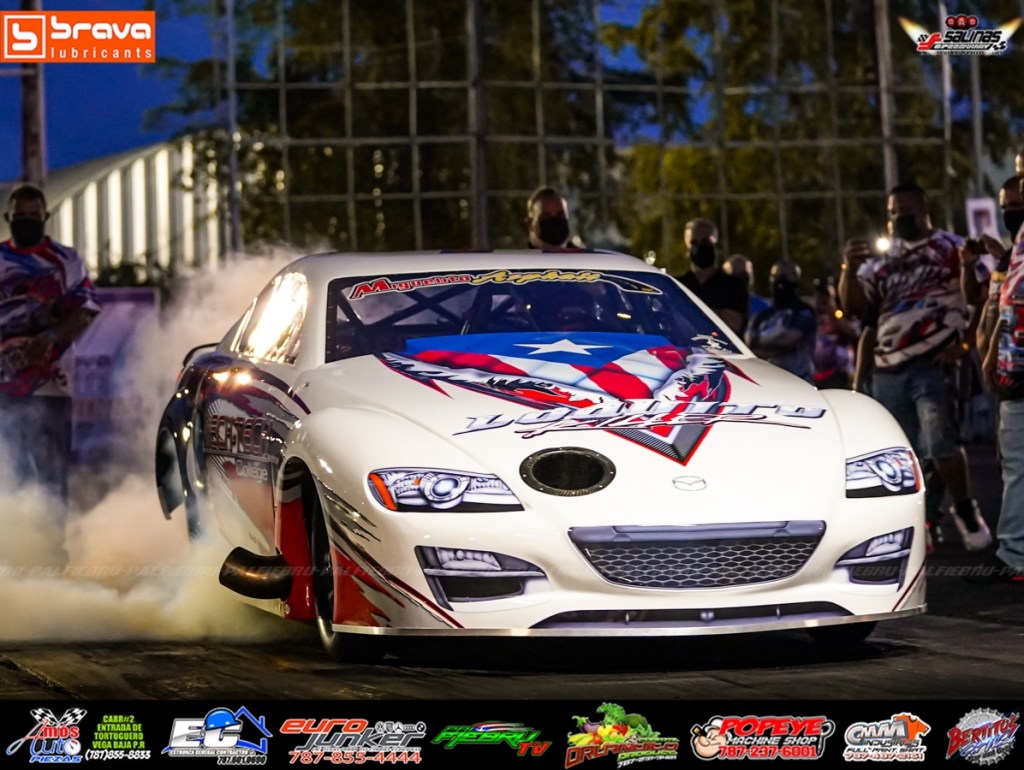 Volvió a Salinas Speedway el 3 Rotores mas Rápido del MUNDO. Si, Edwin Burgos mejor conocido como Loquito Killer estará en Puerto Rico ajustando su poderoso rx8 en busca de seguir mejorando los 60pies del auto con miras a correr en Orlando Speedworld en Octubre y lograr el disparate mas esperado en el mundo de la aceleración los ansiados 5 segundos en un motor rotativo. Y si llegan antes en Puerto Rico??
